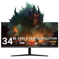 piXL 34-inch UWQHD UltraWide 165Hz Gaming Monitor with 100% sRGB Colour Gamut, Quad HD 3440 x 1440 IPS Panel & 1ms Response Time, 3 Year Warranty & Speakers
