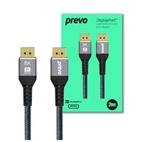 Prevo DP14-2M DisplayPort Cable, DisplayPort 1.4 (M) to DisplayPort 1.4 (M), 2m, Black & Grey, Supports Displays up to 8K@60Hz, Robust Braided Cable, Gold-Plated Connectors, Superior Design & Performance, Retail Box Packaging