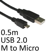 USB 2.0 A (M) to USB 2.0 Micro B (M) 0.5m Black OEM Data Cable