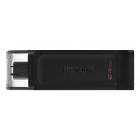 Kingston DT70/64GB DataTraveler 64GB USB Flash Drive, USB 3.2, USB-C, Gen1, 80MB/s, Clear Cap, Black, Retail.