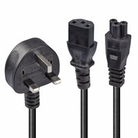 Lindy 30454 0.5m UK 3 Pin Plug To Right Angle IEC C7 (Figure-8) 3 Amp Fuse Mains Extension Cable – Black