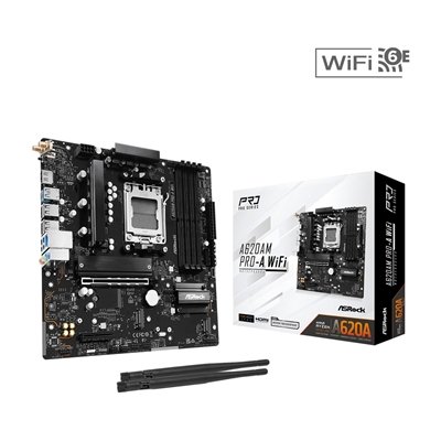 ASRock A620AM PRO-A WIFI AMD Socket AM5 Motherboard, 4 x DDR5 Slots, 3x M.2 Socket, 2.5GbE LAN, Wi-Fi 6E, 1x HDMI Port