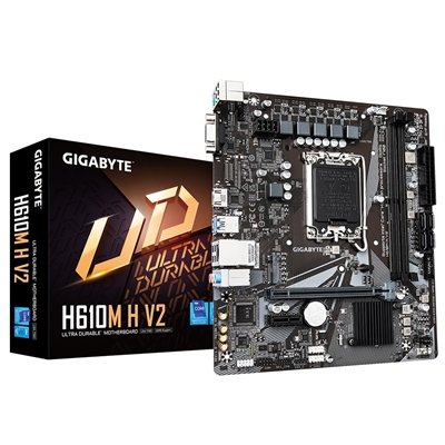 Gigabyte H610M H V2 (Rev. 1.0) Intel 1700 Socket Motherboard, Micro-ATX, 2x DDR5 Slots, 1x M.2 Socket, GbE LAN, 1x D-Sub / 1x HDMI Port