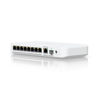 Flexible, 8-port 2.5 GbE PoE++ switch with a 10 GbE RJ45/SFP+ combination uplink port that can be powered with PoE+++ or an AC power adapter.